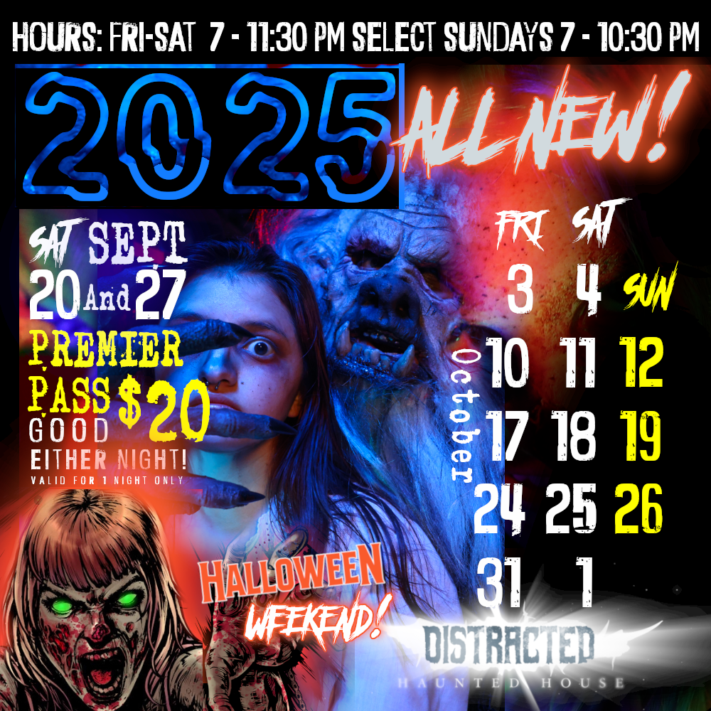 Don't miss Ohio's scariest indoor haunted house! Fully upgraded and expanded this year Distracted is one large contiguous haunted house with multiple themed sections and an evolving origins story that can be found here...